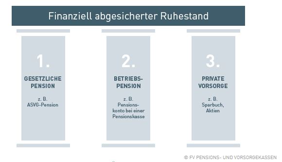 Grundsätzlich ruht das gesamte Pensionssystem auf 3 Pfeilern, die aber in unterschiedlichem Ausmaß genutzt werden können. Die (noch) wichtigste Säule der Altersvorsorge kommt vom Vater Staat. Da wir in Österreich eine verpflichtende Sozialversicherung haben, wird automatisch ein Teil des Brutto-Gehalts an den Staat überwiesen. Damit wird in eine staatliche Krankenversicherung, in die Arbeitslosenversicherung, in eine Unfallversicherung, in eine Insolvenz -Entgeltsicherung, in die Arbeiterkammerumlage, in die Wohnbauförderung und eben in die Pensionsversicherung eingezahlt. Ich werde in diesem Beitrag nur auf die letztgenannte Komponente eingehen. Das Ganze kann man sich wie einen großen Topf vorstellen, in den sowohl der Arbeitnehmer als auch der Arbeitgeber einzahlt. Um auf diesen Topf dann irgendwann auch Zugriff in Form einer staatlichen Pension zu haben, gibt es einige Spielregeln, die wir uns weiter unten im Beitrag ansehen.