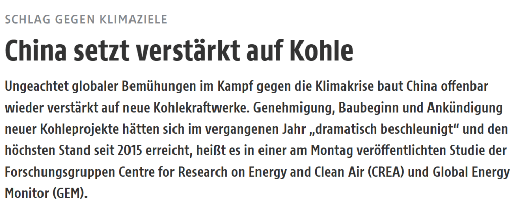Apropos global: China setzt in Zukunft auf Kohle, wie ich diesem Artikel auf orf.at vom 28.02.2023 entnehme: