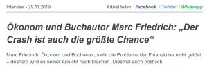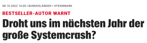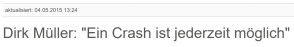 Der nächste Vertreter dieser Zunft ist ein gewisser Dirk Müller, der schon Jahre auf seinen heraufbeschworenen Systemcrash wartet. Unten eine Schlagzeile aus 2015.