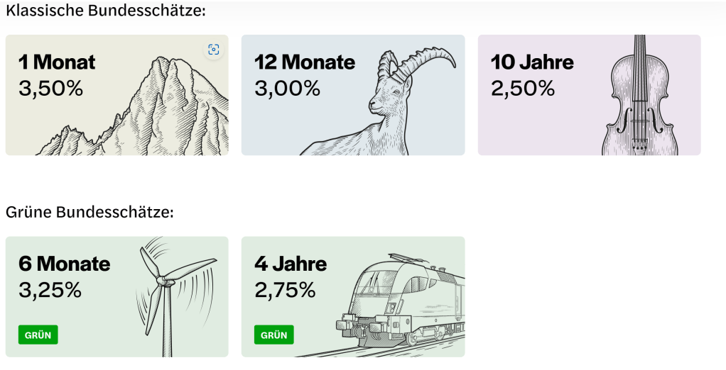 Bevor die Spitzenpolitik in die Wahlkampfarena steigt und außer bissiger Wortmeldung nicht recht viel Konstruktives von sich geben wird, hat unser Finanzminister Magnus Brunner dieser Tage den Bundesschatz wiederbelebt. Das ist nicht etwa eine in der Erde vergrabene Kiste mit Golddukaten, sondern ein echt sinnvolles Instrument, um sein Geld kurz- bis mittelfristig zu parken. https://www.bundesschatz.at/