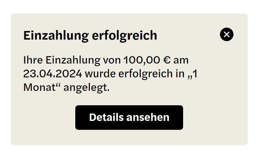 Weil in Österreich eine Überweisung immer noch einen Tag dauert (Tja, liebe Banken, warum wohl?), erscheinen die am 22.04.2024 überwiesenen 100 € erst am 23.04.2024 auf meinem Bundesschatz-Konto.