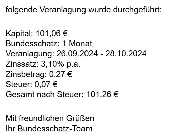 Hier kommentiere ich meine Test-Investition in den Bundesschatz. Dazu gibt es auch einen Blogbeitrag: