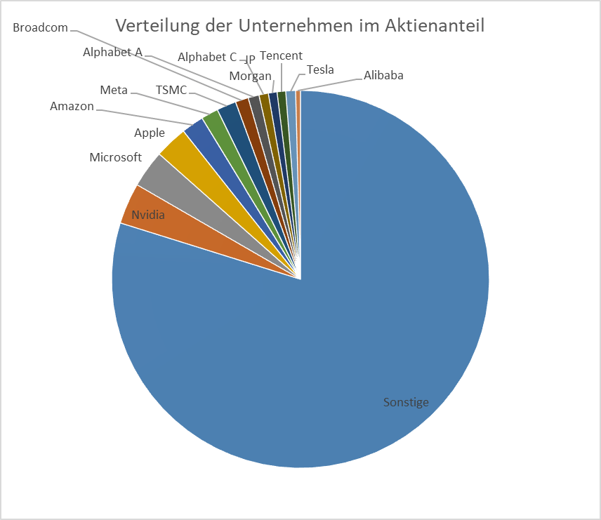 Der sehr breit diversifizierte Aktienanteil, bestehend aus insgesamt ca. 7000 Unternehmen, teilt sich auf folgende Länder auf: